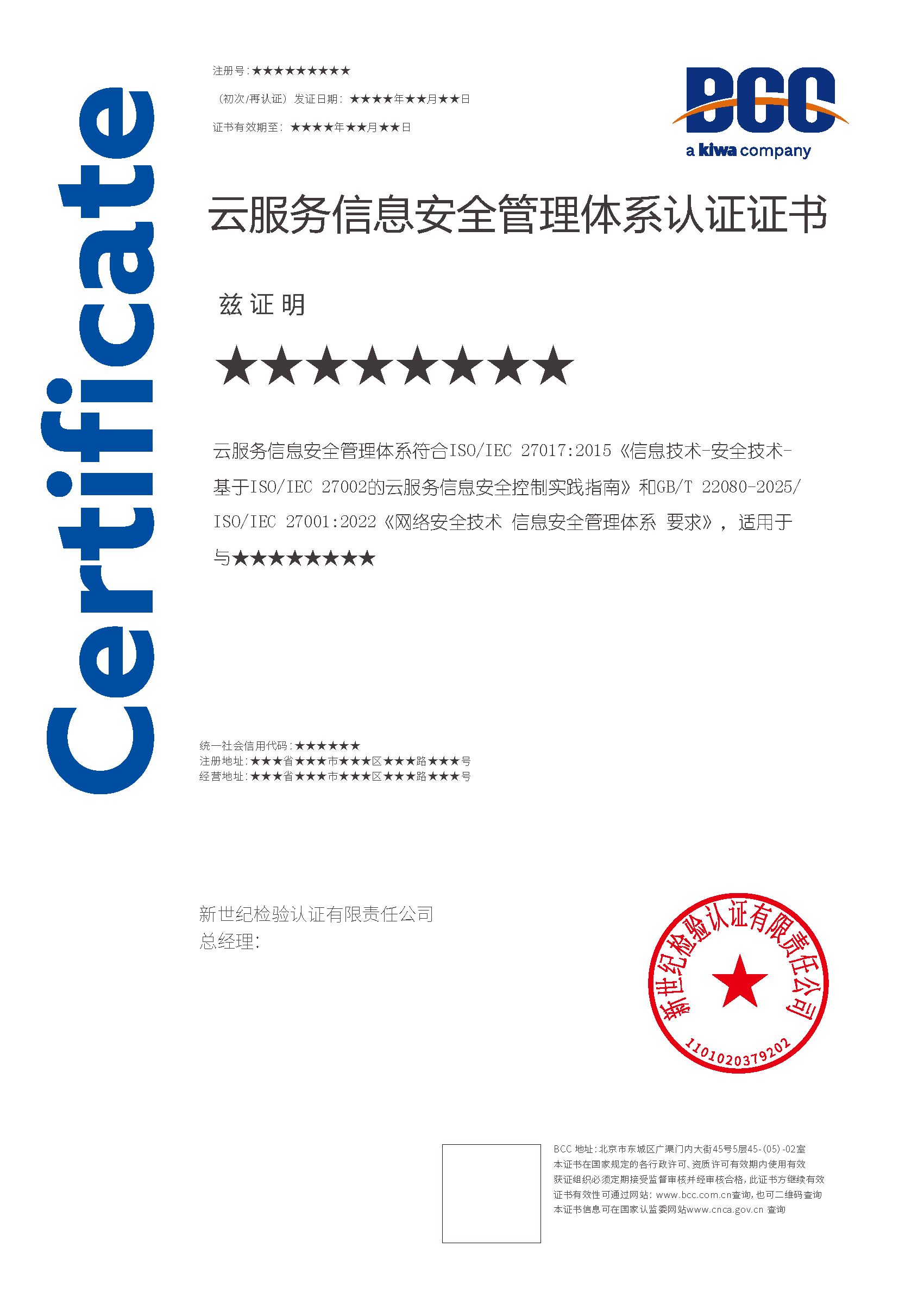 組織的信息安全管理體系(ISMS)發(fā)證機(jī)構(gòu)為BCC 時(shí),需提供以下資料:
