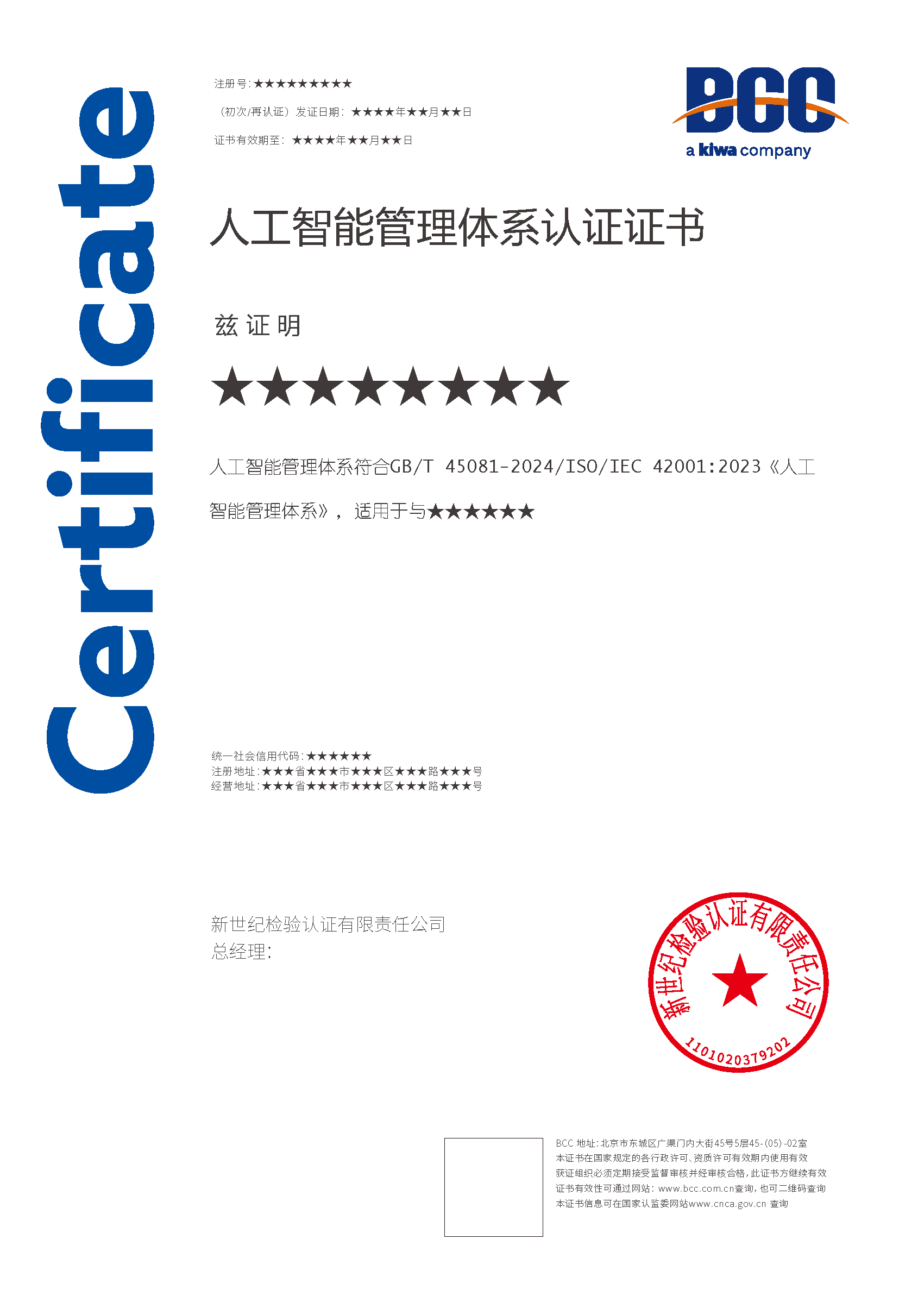本頁(yè)涉及的認(rèn)證服務(wù)中均有對(duì)應(yīng)的《認(rèn)證實(shí)施規(guī)則》,BCC擁有其最終解釋權(quán)。任何組織及個(gè)人未經(jīng)BCC許可,不得以任何形式全部或部分使用(法律要求除外)認(rèn)證相關(guān)信息。如需獲取相關(guān)實(shí)施規(guī)則請(qǐng)用以下方式聯(lián)系獲?。弘娫挘?10-58579316 郵箱:fwjs@kiwa.cn