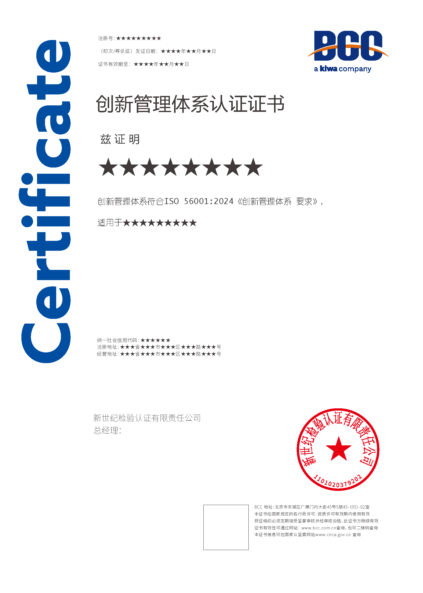 本頁涉及的認證服務(wù)中均有對應(yīng)的《認證實施規(guī)則》,BCC擁有其最終解釋權(quán)。任何組織及個人未經(jīng)BCC許可,不得以任何形式全部或部分使用(法律要求除外)認證相關(guān)信息。如需獲取相關(guān)實施規(guī)則請用以下方式聯(lián)系獲取:電話:010-58579316 郵箱:fwjs@kiwa.cn
