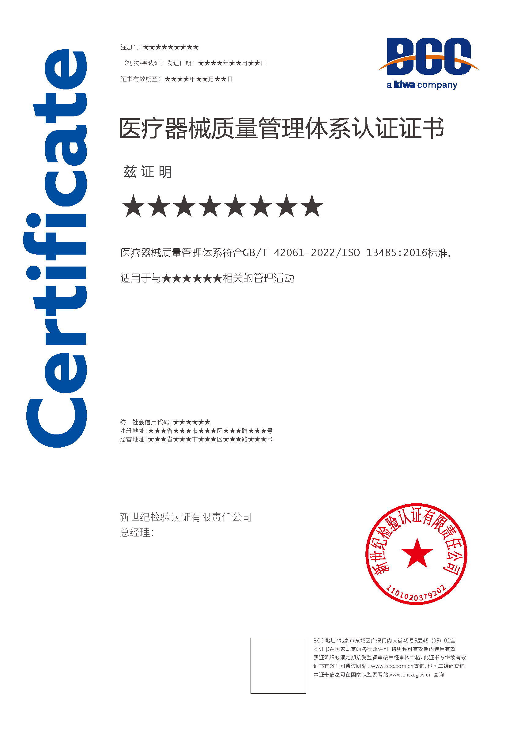 本頁涉及的認證服務中均有對應的《認證實施規(guī)則》,BCC擁有其最終解釋權。任何組織及個人未經(jīng)BCC許可,不得以任何形式全部或部分使用(法律要求除外)認證相關信息。如需獲取相關實施規(guī)則請用以下方式聯(lián)系獲?。弘娫挘?10-58579316 郵箱:fwjs@kiwa.cn