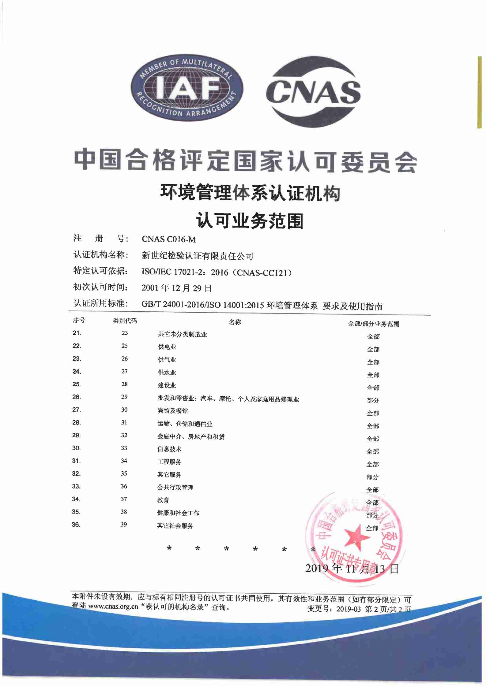 環(huán)境管理體系認(rèn)證機(jī)構(gòu)認(rèn)可證書(二) |