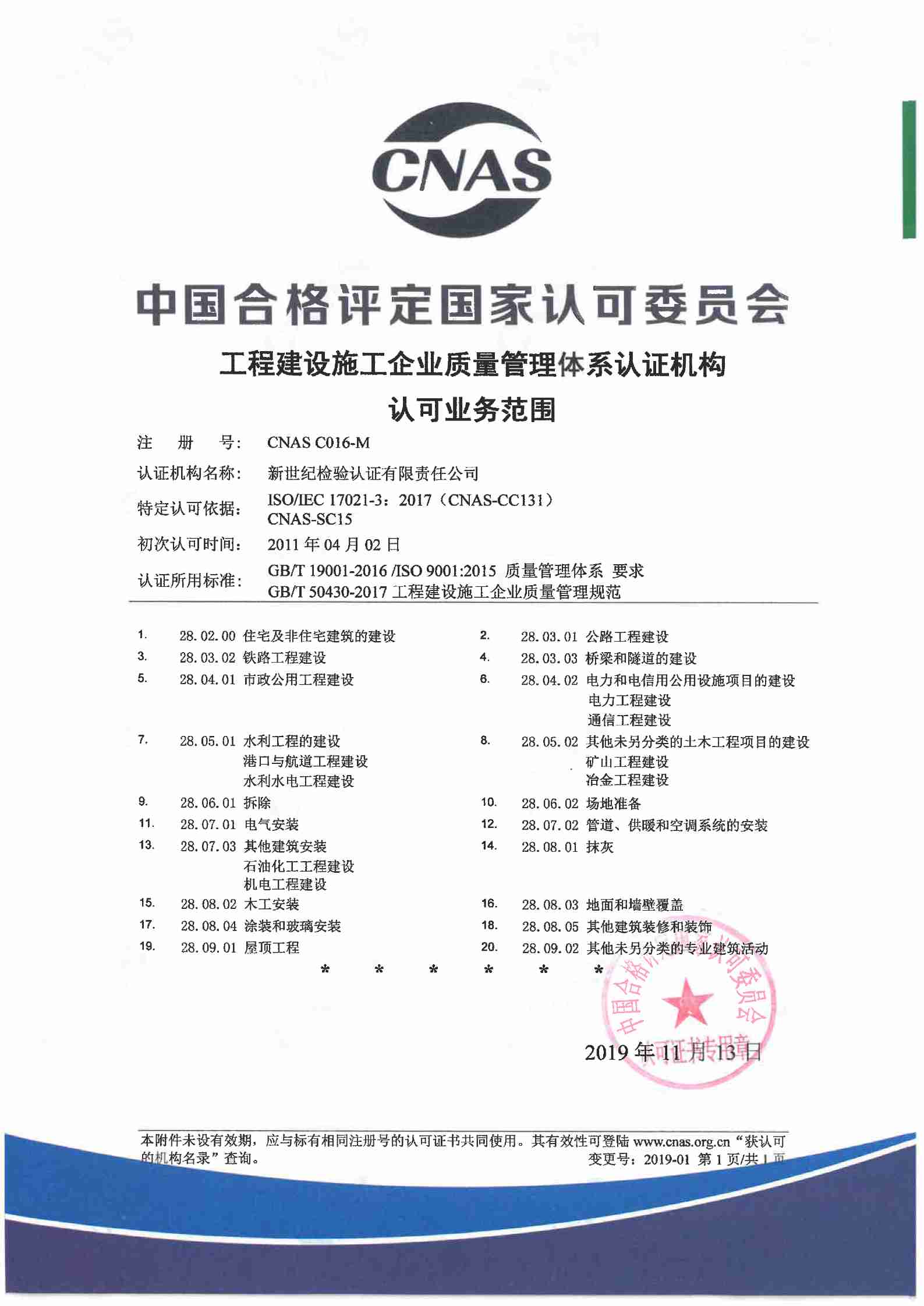 工程建設(shè)施工企業(yè)質(zhì)量管理體系認(rèn)證機(jī)構(gòu)認(rèn)可證書 |