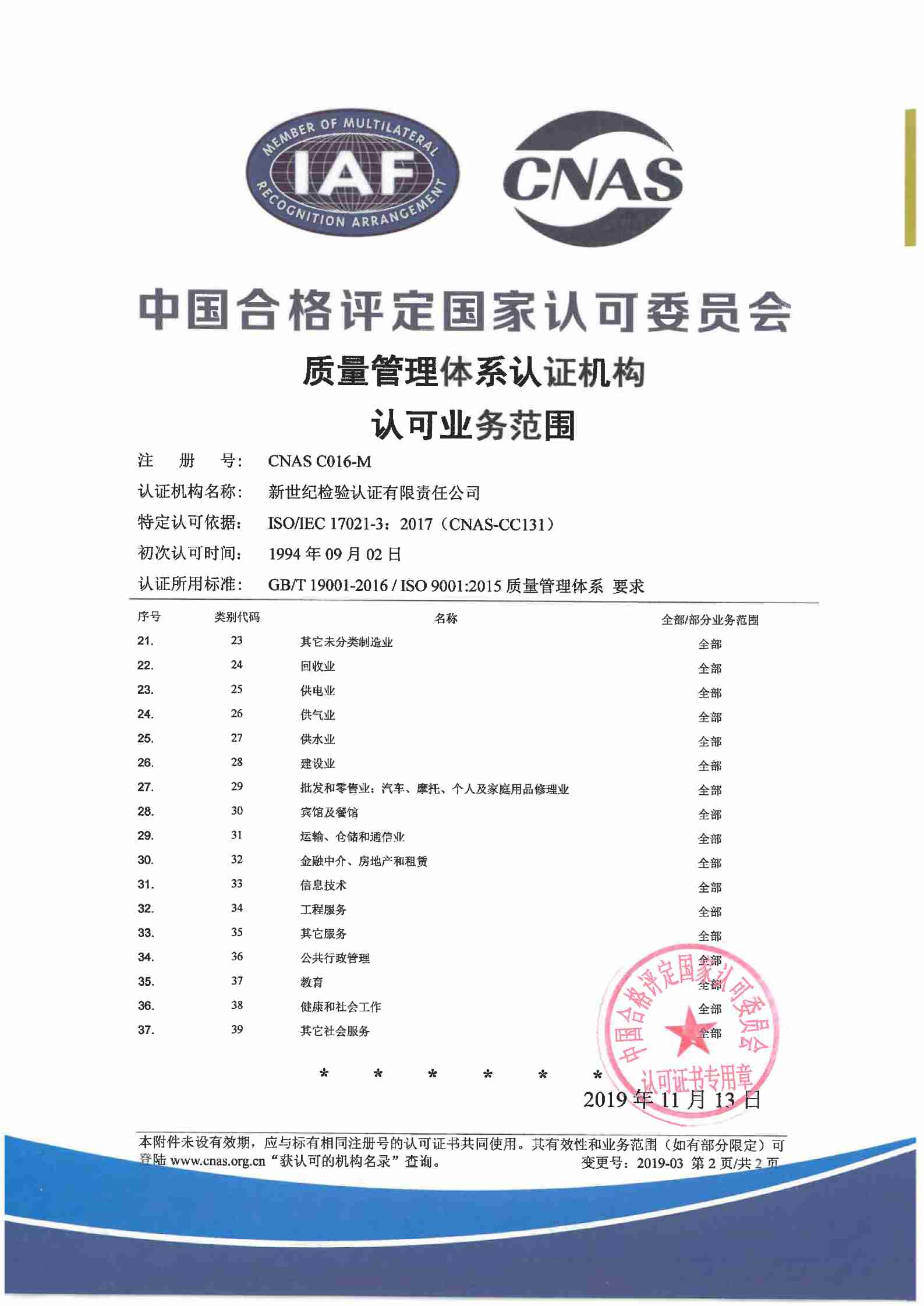 質(zhì)量管理體系認(rèn)證機(jī)構(gòu)認(rèn)可證書(二) |