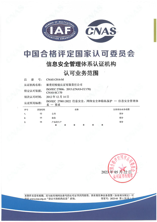 信息安全管理體系認(rèn)證機(jī)構(gòu)認(rèn)可證書 |