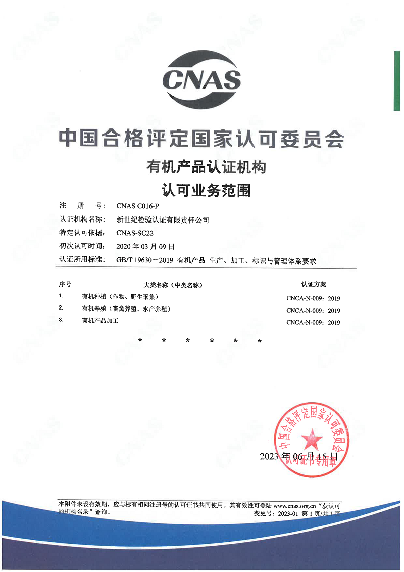 有機(jī)產(chǎn)品認(rèn)證機(jī)構(gòu)認(rèn)可證書 |