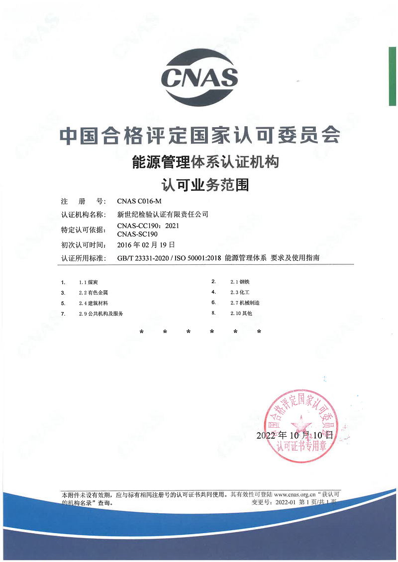 能源管理體系認(rèn)證機(jī)構(gòu)認(rèn)可證書 |