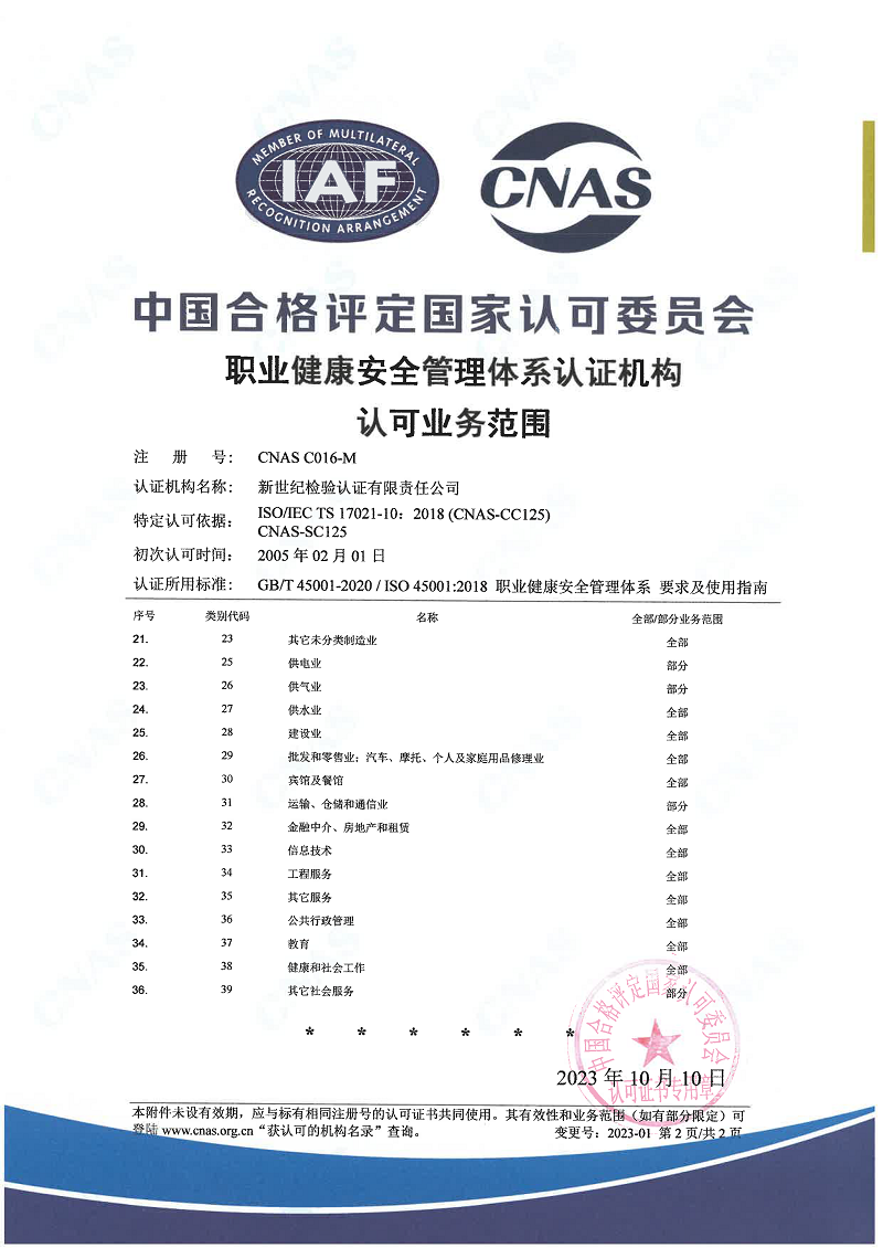 職業(yè)健康安全管理體系認(rèn)證機(jī)構(gòu)認(rèn)可證書(二) |