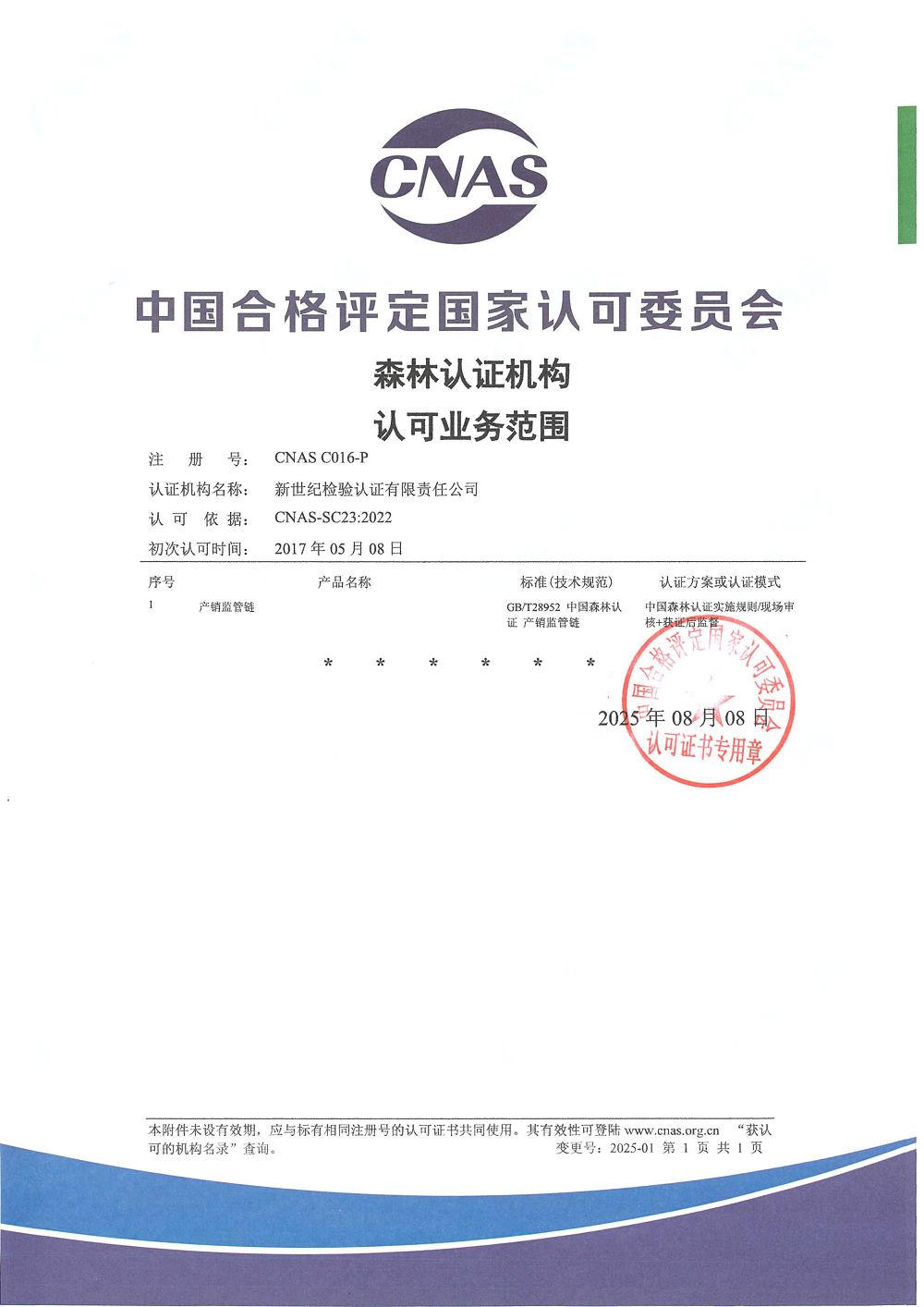 森林認(rèn)證機(jī)構(gòu)認(rèn)可證書 |