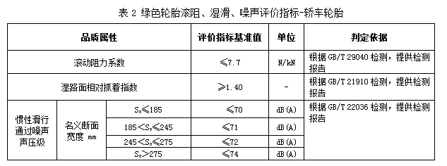 4、品質(zhì)屬性。不同類型的轎車輪胎和載重汽車輪胎綠色產(chǎn)品品質(zhì)屬性指標(biāo)及判定依據(jù)分別見(jiàn)表2和表3。